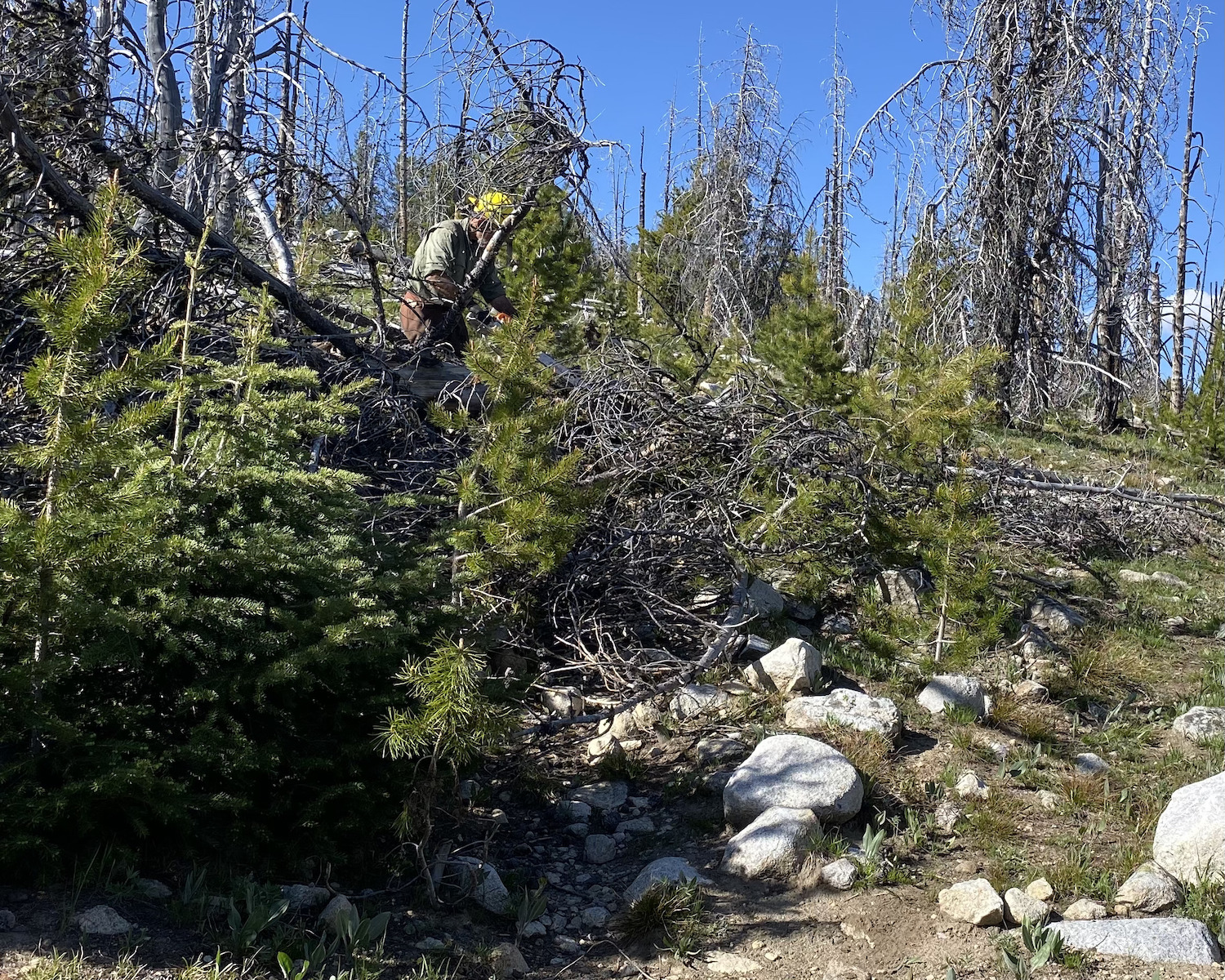 With me was Karl Kaiyala, an experienced sawyer who spends significant volunteer time logging out recreational trails. If you hike anywhere in the Methow Valley or the Okanogan-Wenatchee, you’re almost certainly enjoying some of Karl’s handiwork. We were at the tail end of a 12-hour day spent logging out the trail to the summit of North Twentymile. Again.