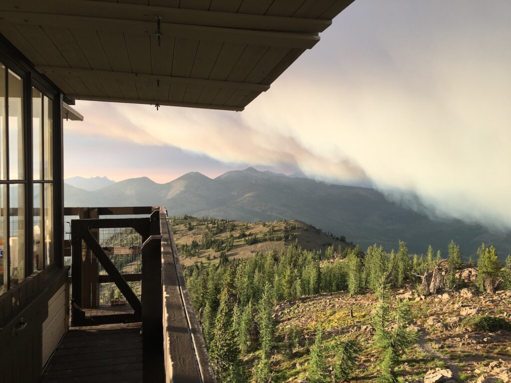 The view of the Varden Creek fire and smoke from inside Goat Peak.